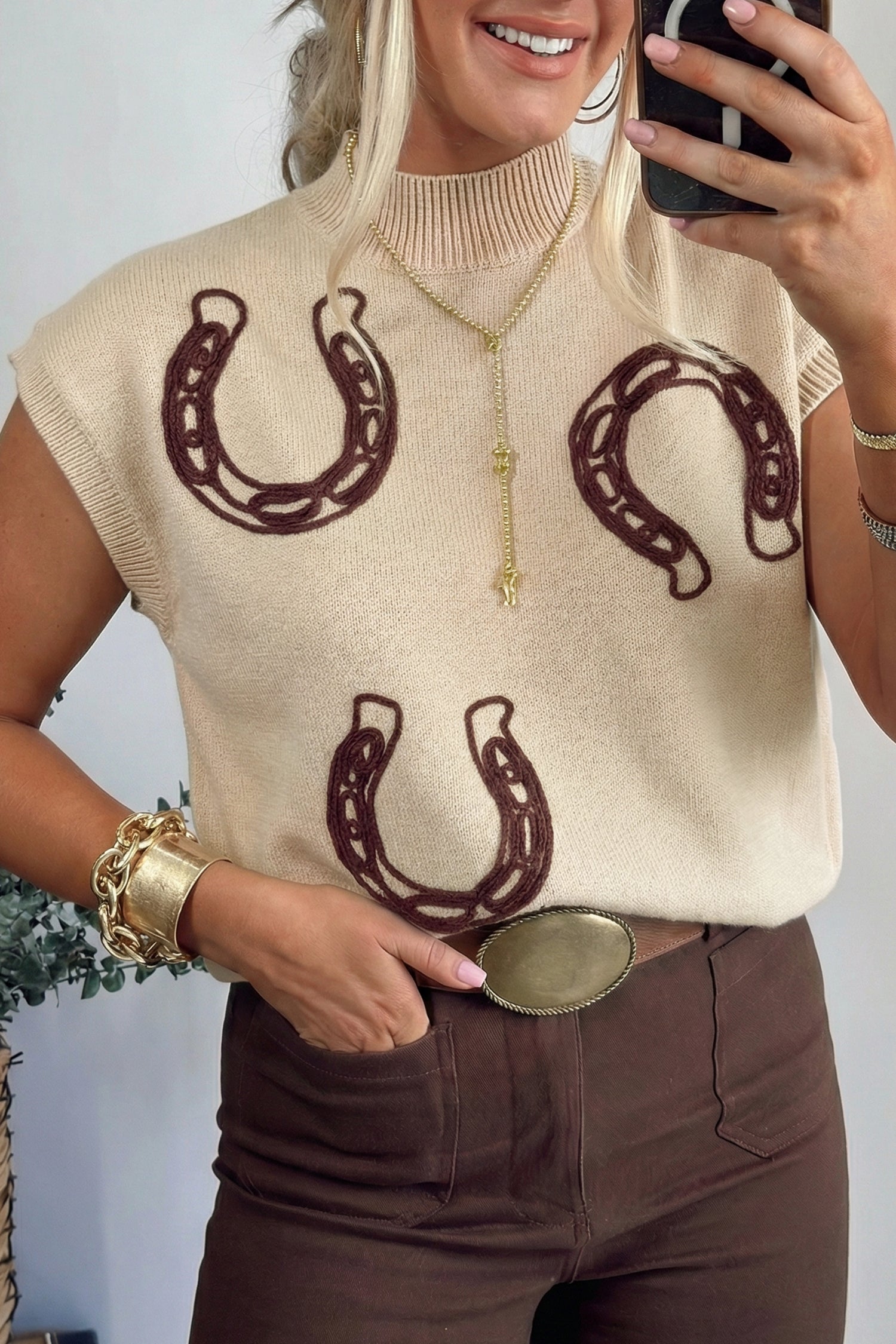 Corded horseshoe graphic delivers a charming Western theme.